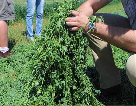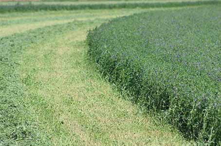 Hays vary greatly in quality. Quality depends on the maturity of the plant when harvested, extent of mechanical damage, and the method used in drying. Legume hays (alfalfa, lespedeza, birdsfoot trefoil, and clover) provide higher levels of protein, calcium, and vitamin A (carotene) than do grasses. Grass hays (timothy, orchardgrass, fescue, and smooth bromegrass) are lower in calcium and protein and higher in fiber than legumes. Where both legumes and grasses are available, a mixed hay is an ideal forage for animals. As the plant matures, it becomes less nutritious and loses digestibility. All hay is best .harvested before one-half of the plants have headed out or bloomed. Pure legume hays should be fed to growing animals and lactating animals, because of their very high calcium and protein requirements. Pure alfalfa may be too rich in energy and protein for performance, and has more calcium than is needed for pregnant animals.