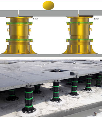 Slope correctors could compensate ground fall 05 - 5%, making ideal levelling surface. It is assembled on the top of pedestals. Clients could to use it or not with different installing confliction.