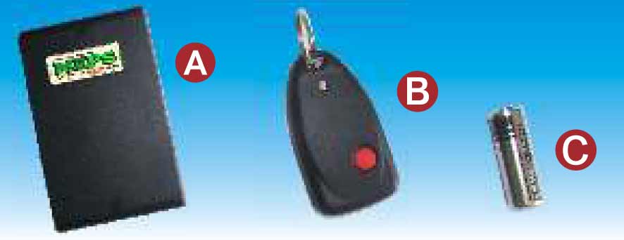 A: Receiver B: Remote transmitter (Code hopping) Remote Battery (These options a re supplied on request only)12V DC - Security/ Animal Control